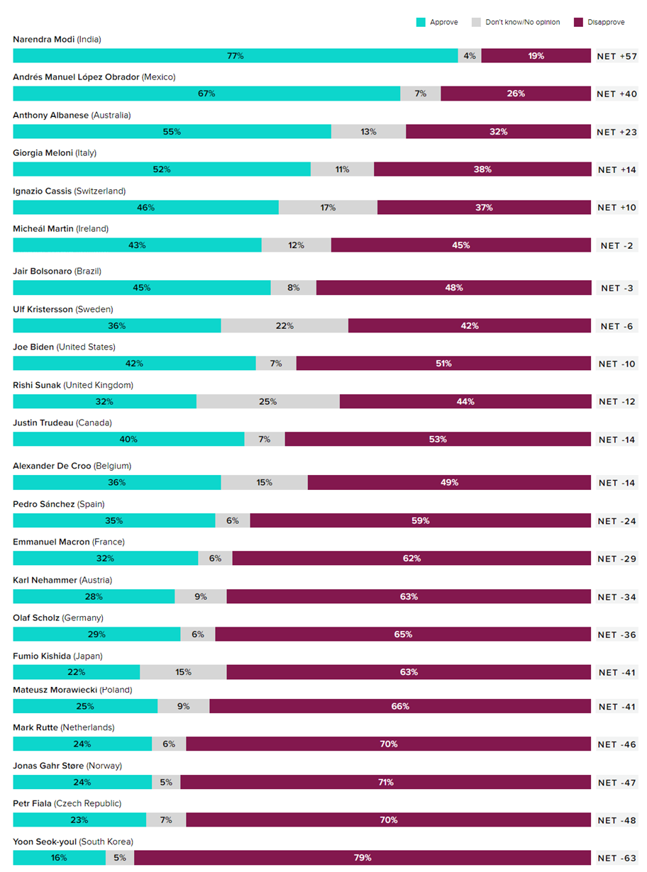 - 주요 22개 국가 지도자 지지율 (2022년 9월 22일 자)